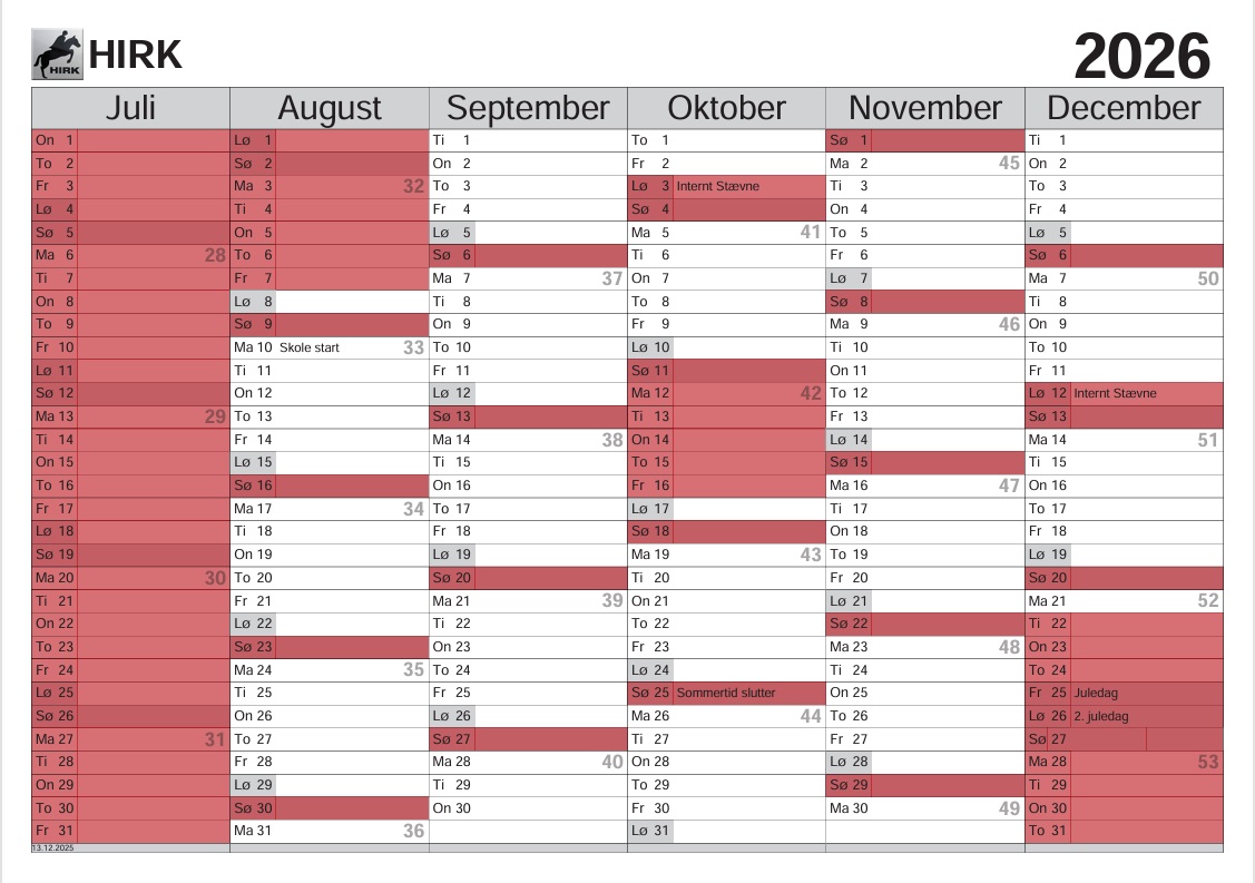 På dage med rødt baggrund er rideskolen lukket.